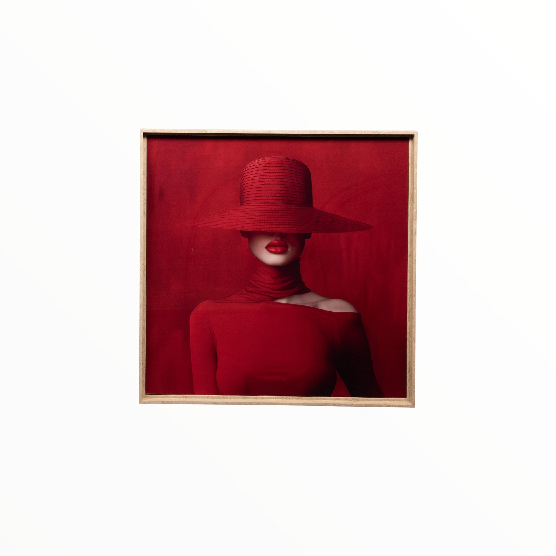 Add a bold statement to your space with the CANVAS SHARON RED 80 x 80 cm. This captivating wall decoration combines vibrant red tones with sleek plexiglass and warm wood accents, creating a dynamic and stylish piece. Perfect for those who want to infuse energy and elegance into their home, it celebrates feminine strength and modern design in one striking artwork.