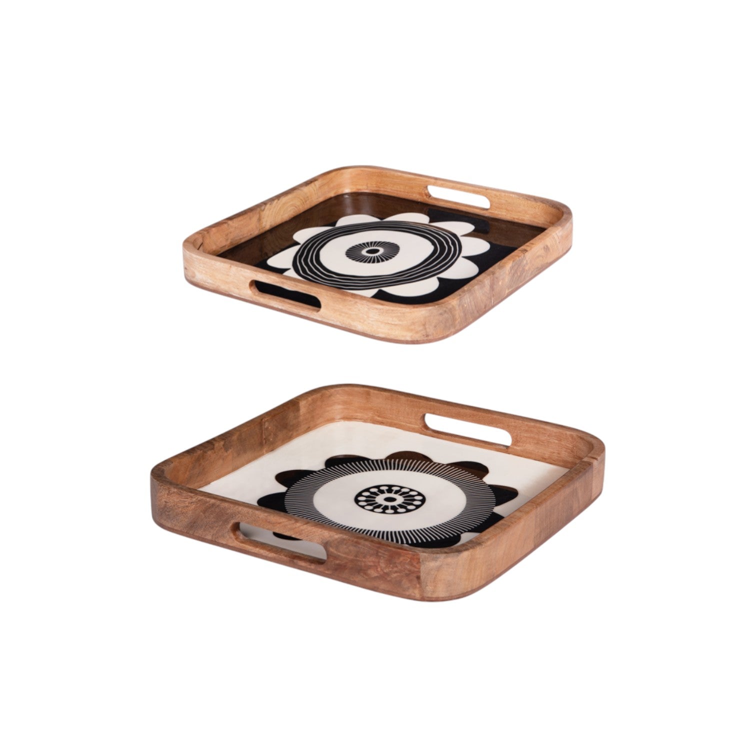 Elevate your space with this elegant set of two square trays crafted from sustainable mango wood. Available in sophisticated black, brown, or white finishes, these versatile pieces measure 35 cm and 40 cm, perfect for serving, organizing, or decorative display. Timeless design meets practical functionality.